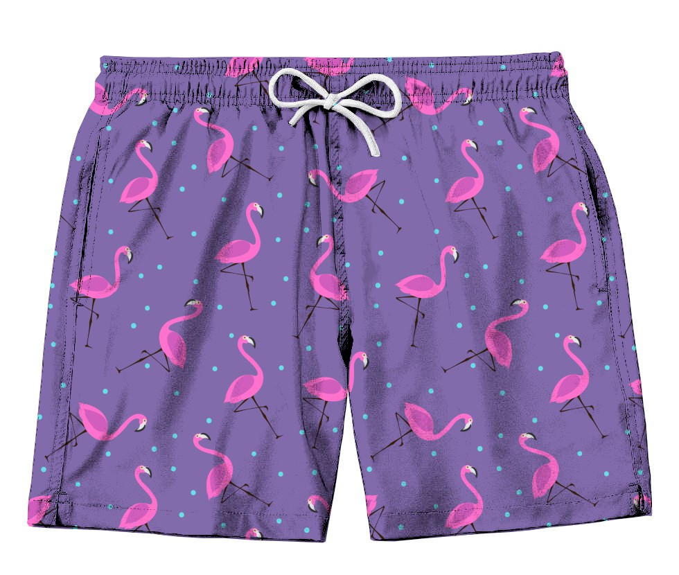 Short Tactel | Flamingos Fundo Roxo