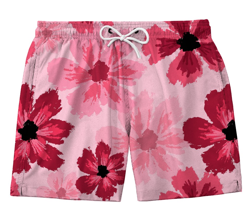 Short Tactel | Flores Vermelhas Fundo Rosa