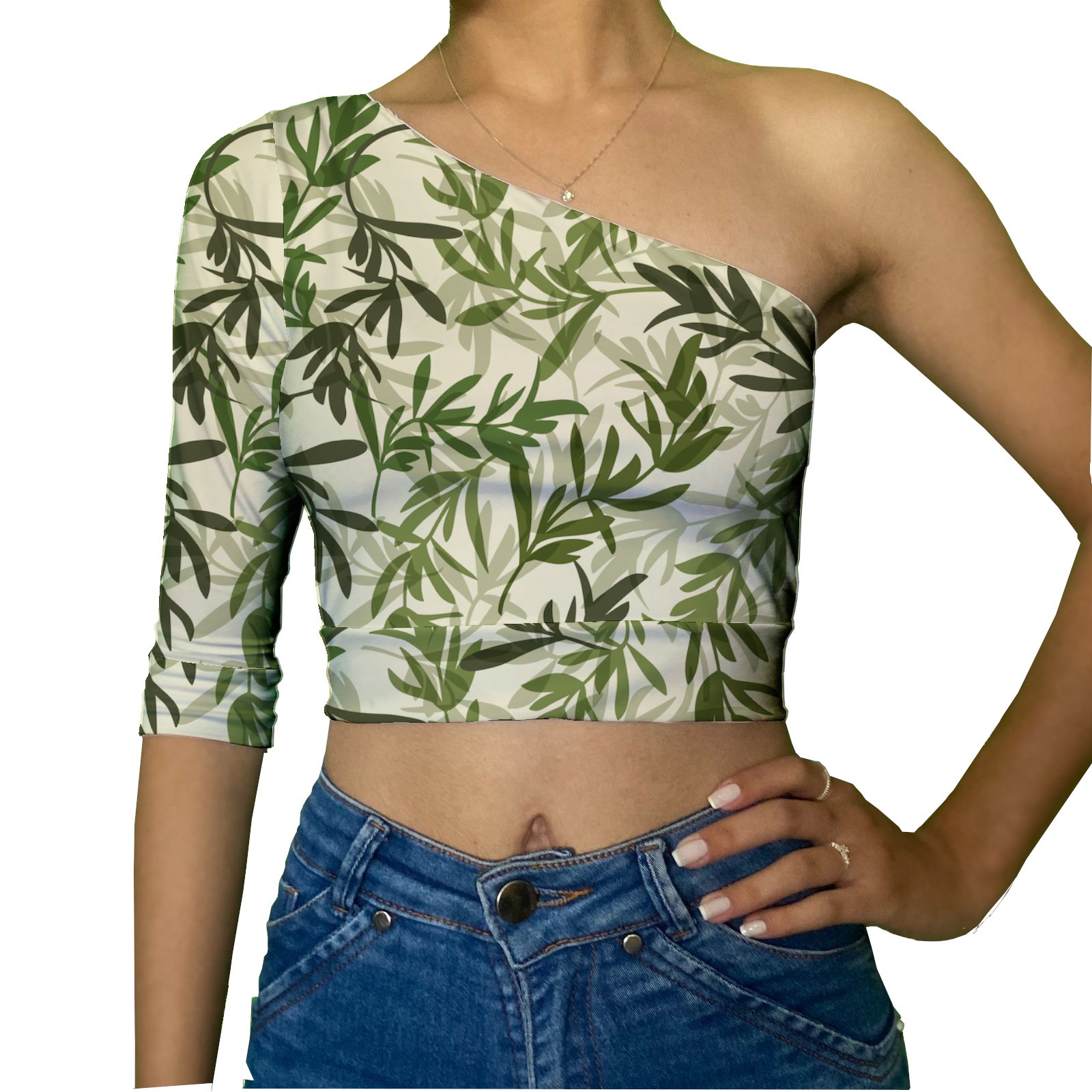 Cropped Uma Manga | Folhagens. Você encontra aqui na Swag On.