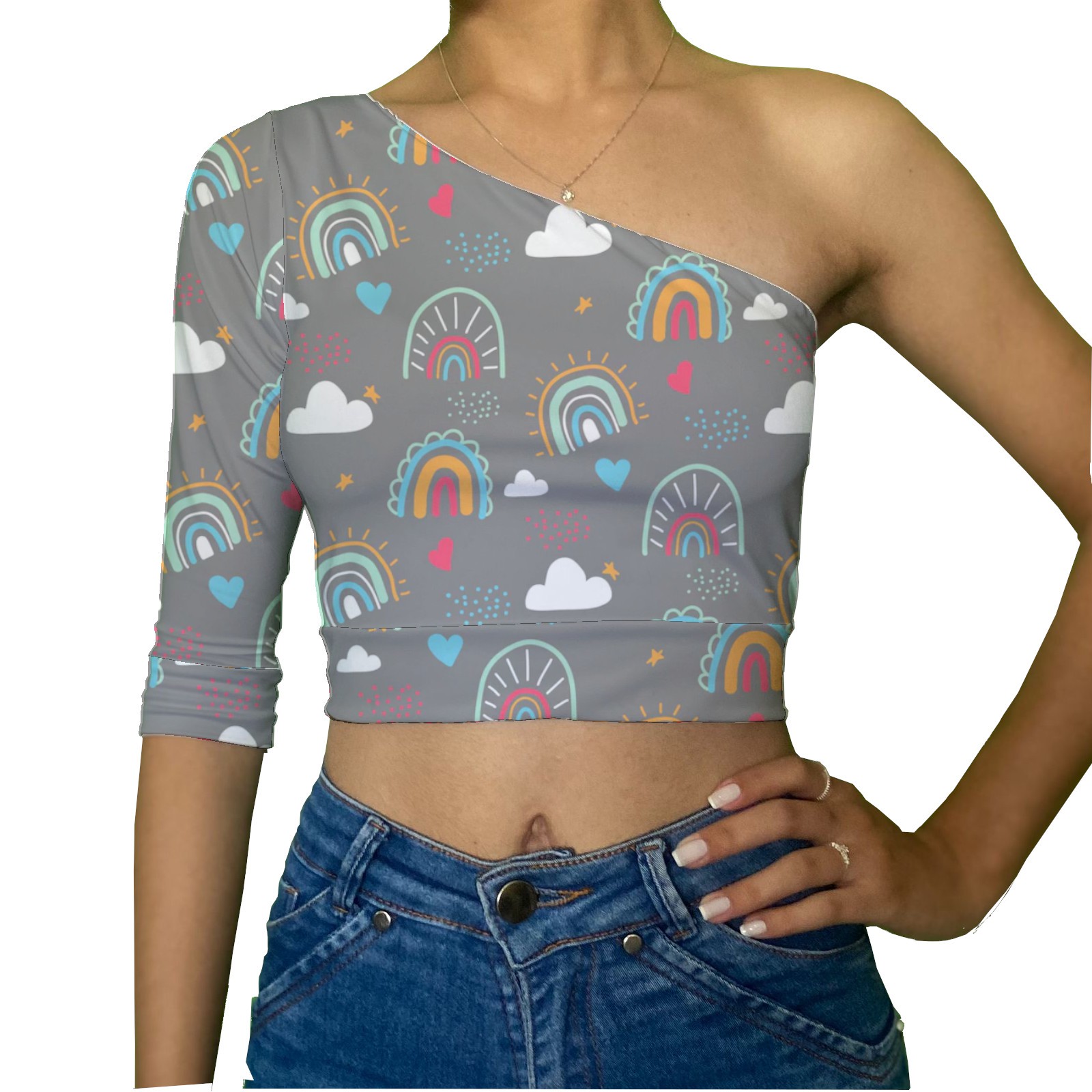 Cropped Uma Manga | Arco-iris Simbolos. Você encontra aqui na Swag On.