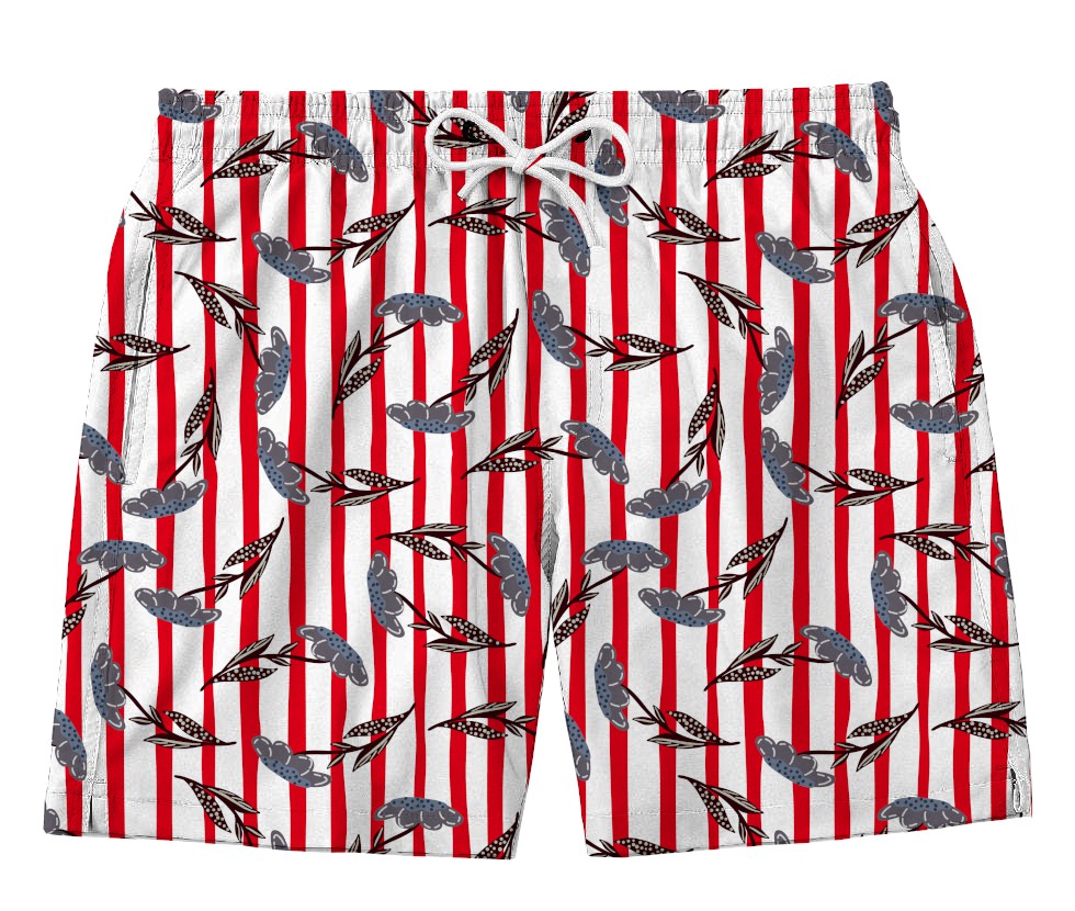 Short Tactel | Flores Listras Vermelhas