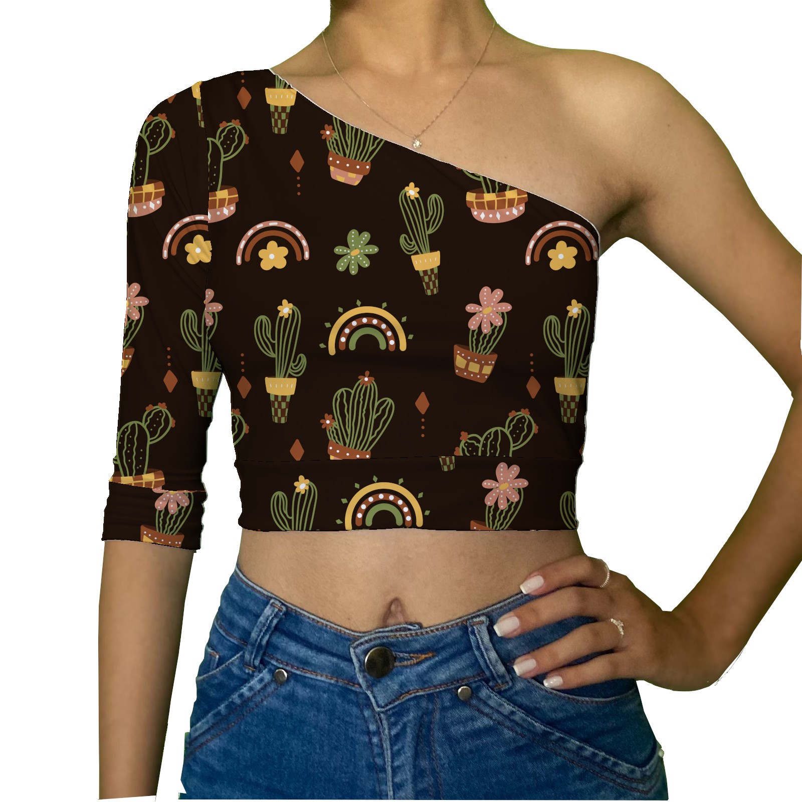 Cropped Uma Manga | Cactos e Flores. Você encontra aqui na Swag On.