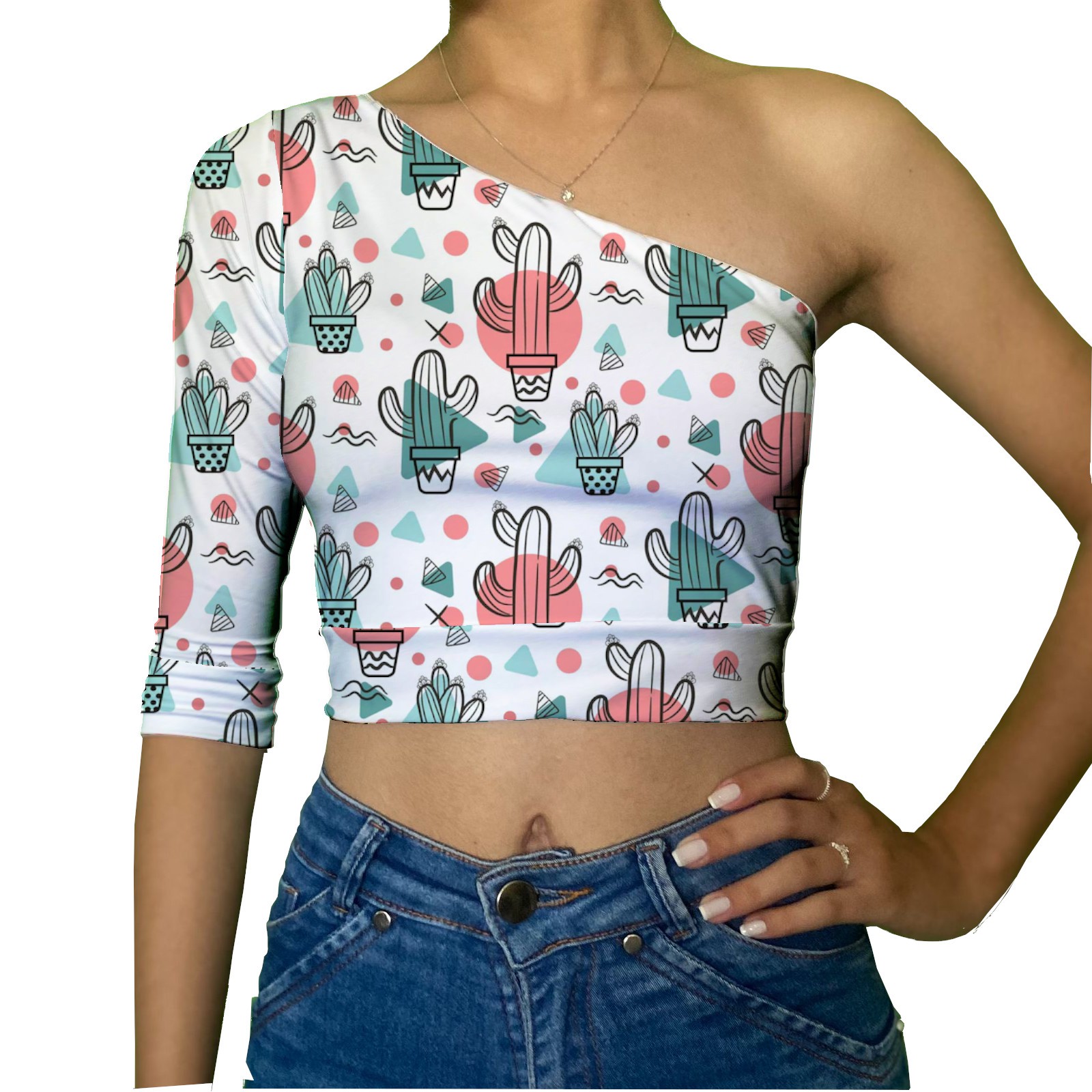 Cropped Uma Manga | Cactos Manchas Rosa. Você encontra aqui na Swag On.