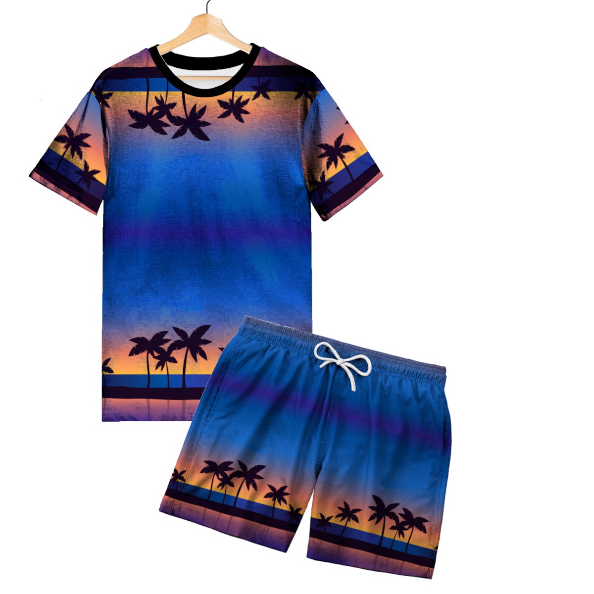 Camiseta e Short Tactel | Coqueiros Fundo Azul 1